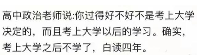 这个老师说的对啊,我突然想起来我总是听大人说大学了就轻松了,真的是,到了大学简直就是报复性的玩,甚至刚高考完就开始了,现在想想我当初应该去找假期工的,像我这种家里没有关系的得提前了解就业市场。