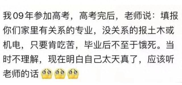 有钱人家的孩子就报和家里有关系的,这样子以后家里也可以帮忙提点,以后的路好走,有人脉啊什么的。普通家庭没钱没背景的孩子就报一些只要努力就可以有前程的工作。