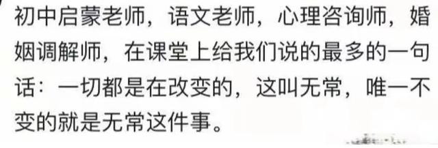 一切都是在改变的。唯一不变的就是无常这件事。这是心灵导师!